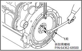 (2) 均等的旋入2個(gè)拆卸用螺栓,將三菱S6R柴油發(fā)動(dòng)機(jī)飛輪拆下。