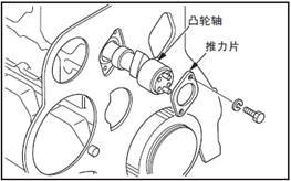 注: 在拆出三菱S6R柴油發(fā)動(dòng)機(jī)凸輪軸前,先拆下安裝在三菱S6R柴油發(fā)動(dòng)機(jī)凸輪軸前端的油封座、油封和聯(lián)軸器。