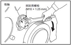 均等的旋入2個(gè)拆卸用螺栓,將惰軸拆下。