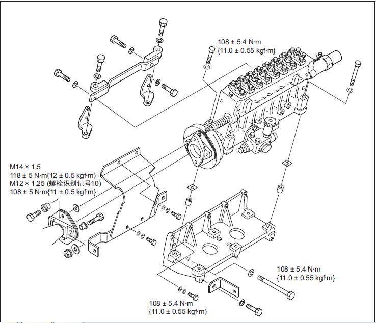 (7) 安裝噴油泵殼體和三菱R16柴油發(fā)動(dòng)機(jī)三菱R16柴油發(fā)動(dòng)機(jī)缸體之間的支架。