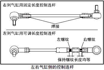 (2) 右氣缸側(cè)用固定長(zhǎng)度(239 mm)的控制三菱R16柴油發(fā)動(dòng)機(jī)連桿B-1,連接控制三菱R16柴油發(fā)動(dòng)機(jī)連桿柄和控制軸的柄。