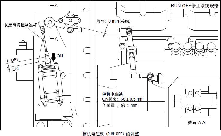 3.3.4 三菱S16柴油機(jī)停機(jī)電磁鐵(RUN OFF) 的調(diào)整