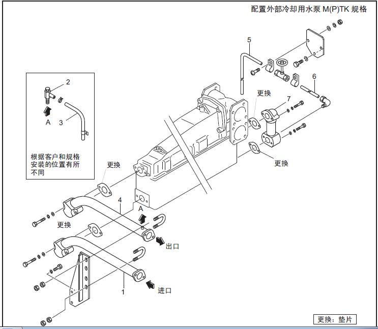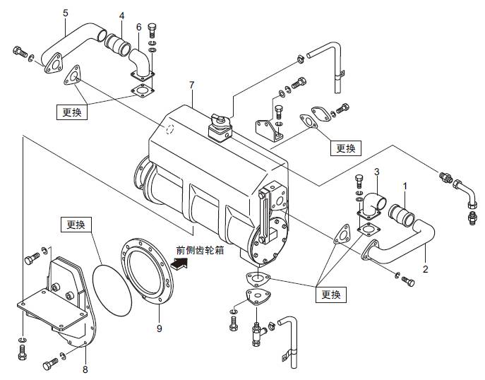 三菱S16柴油機(jī)冷卻水管的拆卸,檢修
