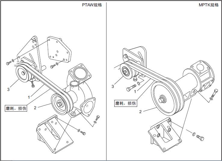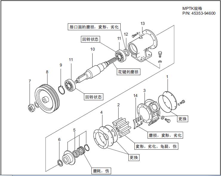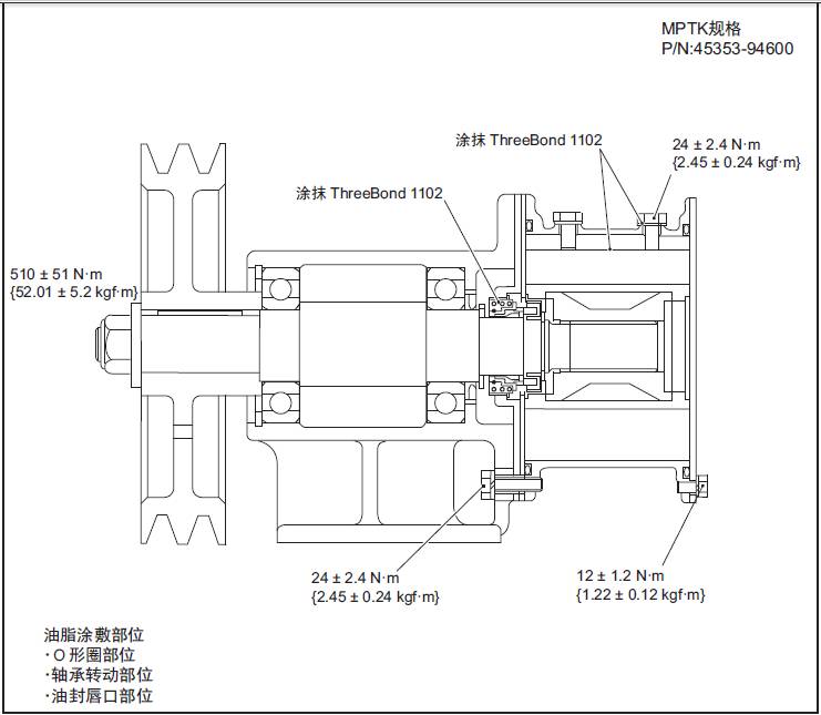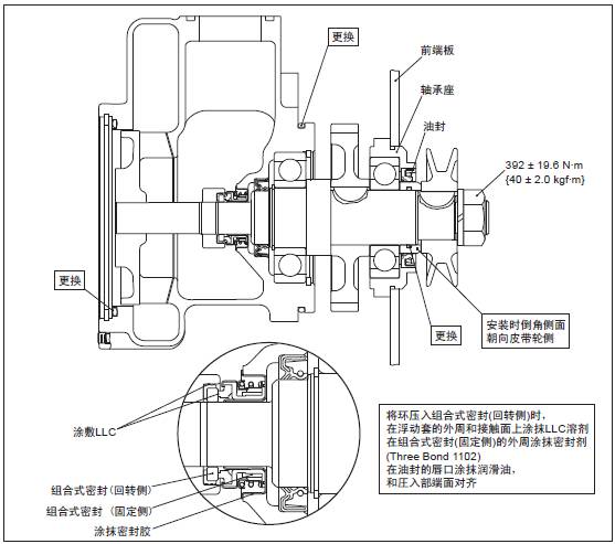 (1) 三菱S16柴油機(jī)皮帶輪側(cè)的球軸承回轉(zhuǎn)部分和三菱S16柴油機(jī)水泵泵體內(nèi)充填WPH油脂( 協(xié)同油脂㈱生產(chǎn))。