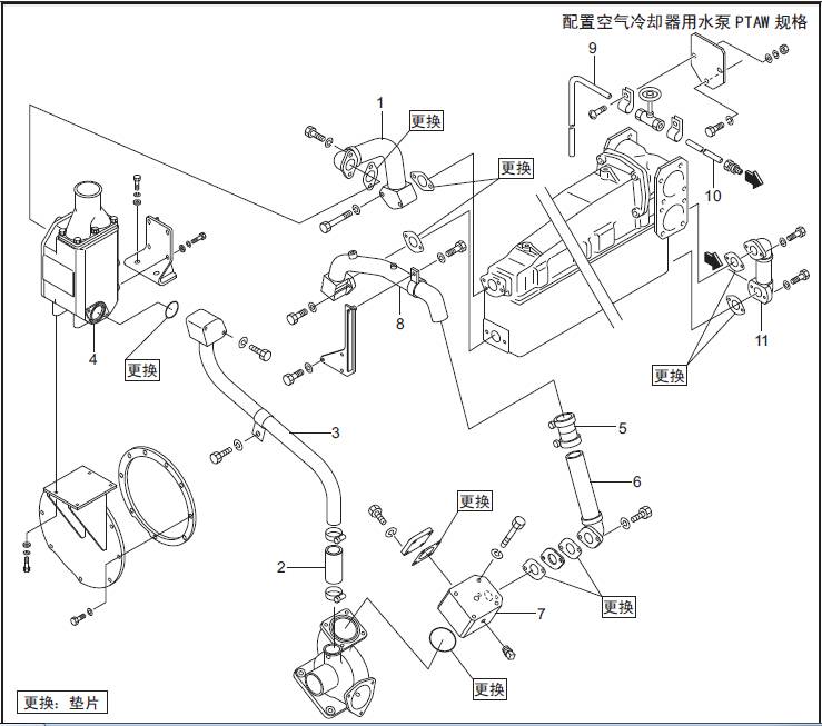 三菱S16柴油機(jī)空氣冷卻器水泵的組裝
