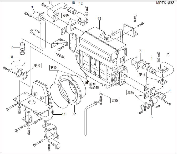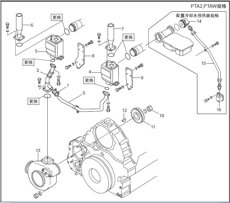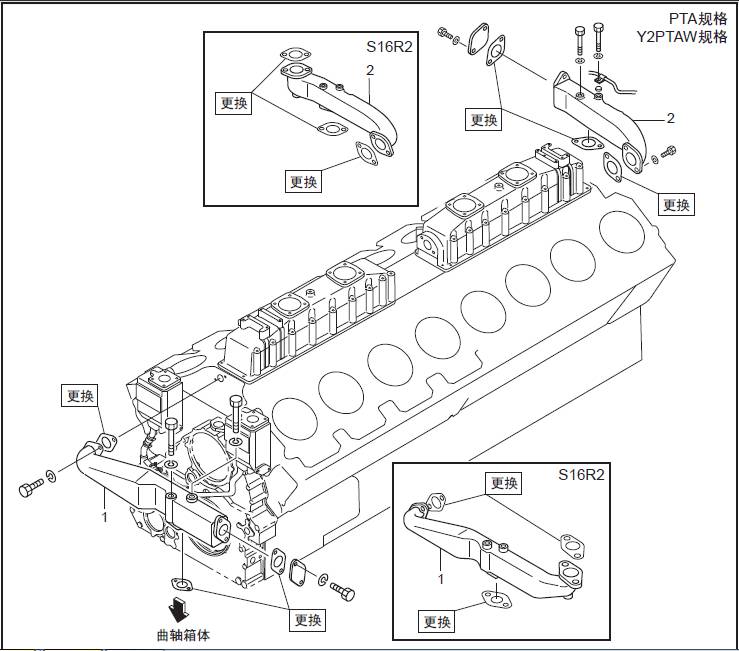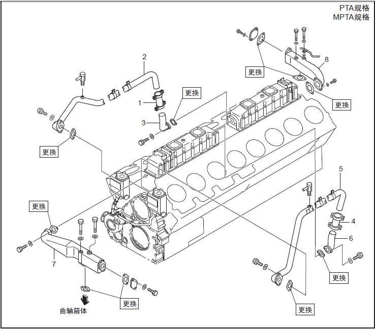 三菱S16柴油機(jī)冷卻水管的拆卸,檢修拆卸順序