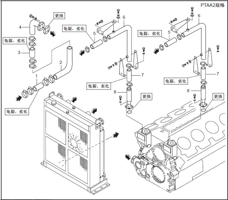 外部三菱R16柴油發(fā)動(dòng)機(jī)冷卻系統(tǒng)的拆卸,檢修