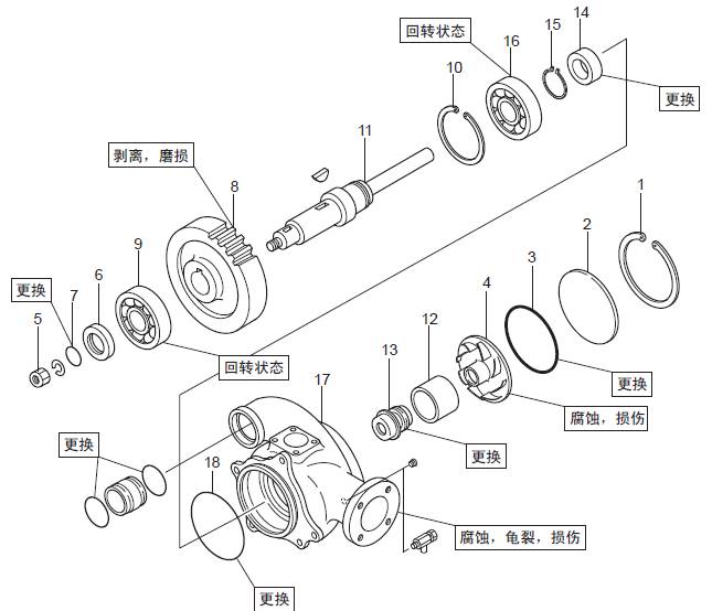 三菱S16柴油機(jī)空氣冷卻器用海水泵的解體、檢修