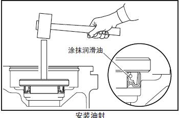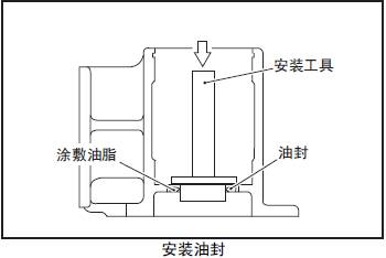 (2) 在三菱柴油機(jī)油封的中空部和唇口涂抹油脂。
