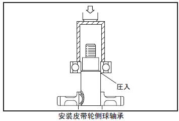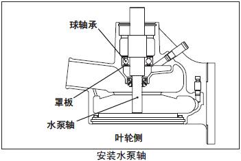 (1) 葉輪側(cè)球軸承的罩板側(cè)朝向葉輪側(cè),壓入三菱S16柴油機(jī)水泵軸。