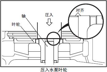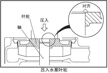 (2) 用壓力機(jī)壓入三菱S16柴油機(jī)水泵葉輪。這時(shí),三菱S16柴油機(jī)水泵葉輪的輪轂端面要和三菱S16柴油機(jī)水泵軸的端面平齊。