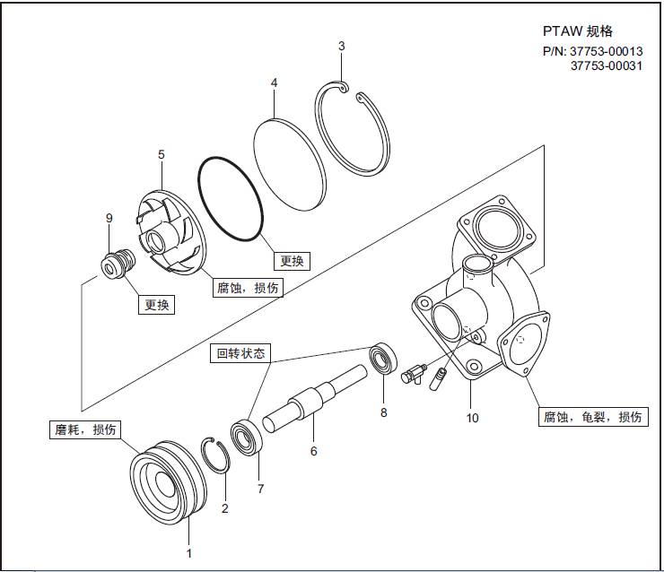 三菱S16柴油機(jī)空氣冷卻器水泵的解體、檢修
