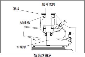 (2) 球軸承的罩板側(cè)朝向葉輪側(cè),壓入三菱S16柴油機(jī)水泵軸。