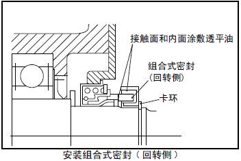 (1) 用酒精清洗組合式密封( 回轉(zhuǎn)側(cè)) 的接觸面和內(nèi)面后,涂敷透平油。