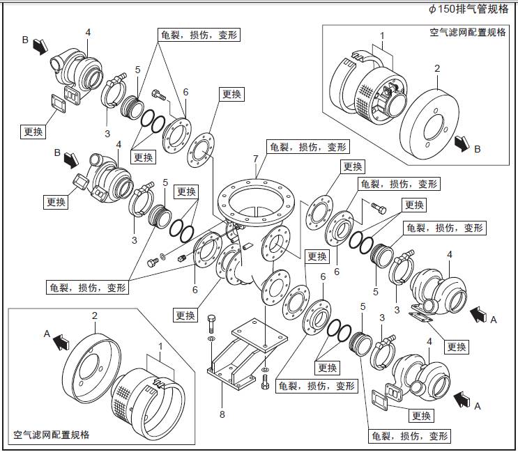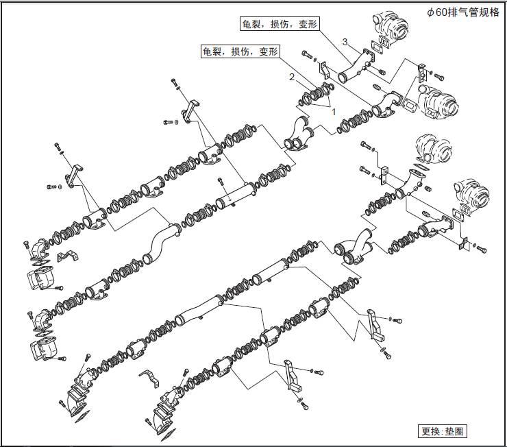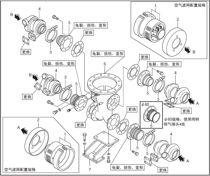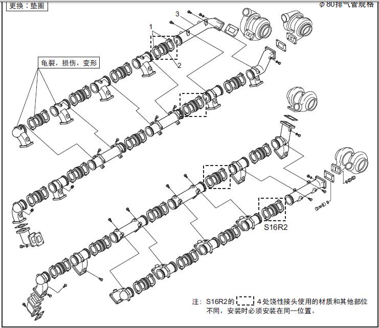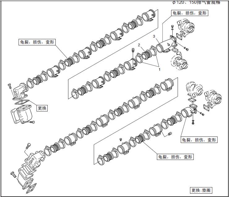1 聯軸器2 饒性管 3 排氣歧管