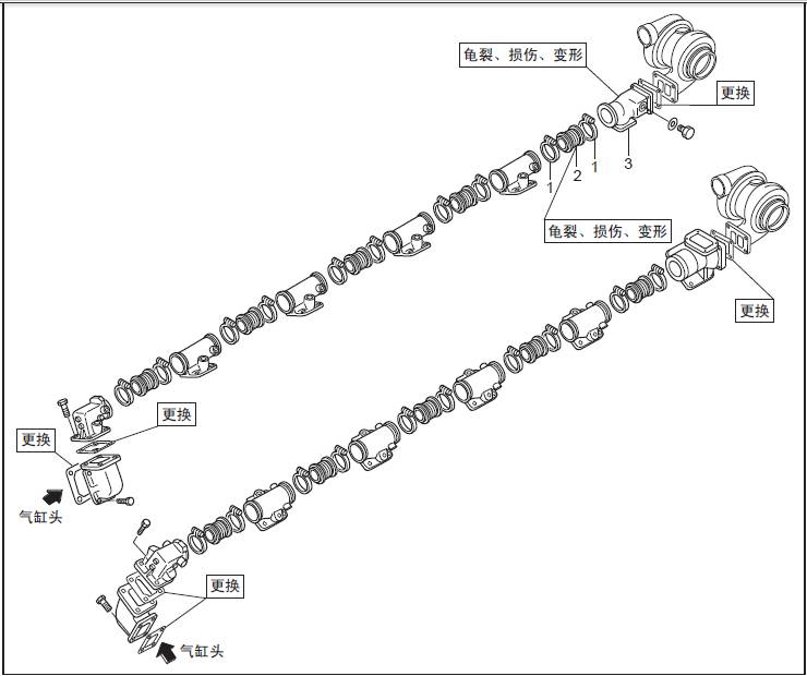 三菱R16柴油發動機排氣歧管的拆卸、檢測