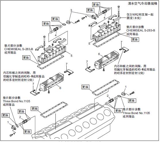 TAA規格(三菱S16柴油機空氣冷卻器、三菱R16柴油發動機三菱R16柴油發動機缸體之間) 空氣管的拆卸,檢修