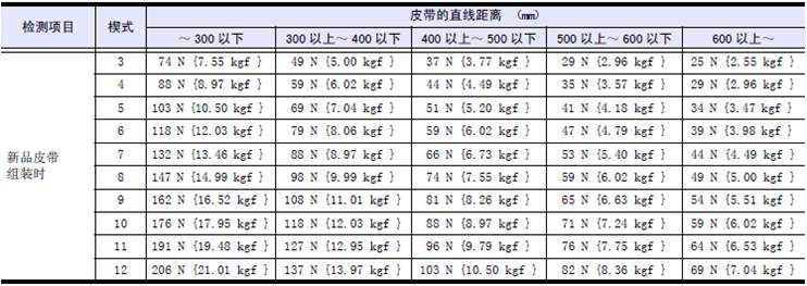 (2) 檢測皮帶的張緊力( 下陷量)。