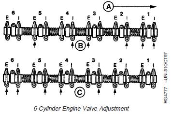 John Deere約翰迪爾強鹿6缸柴油發動機點火順序1-5-3-6-2-4. 氣門調整方法