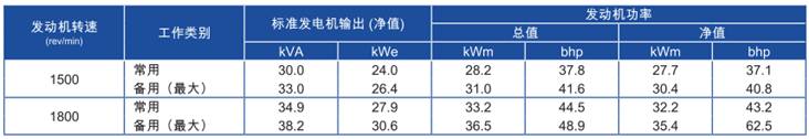 上表所有額定功率數據均為ISO/TR 14396/IS0 8528條件下操作時數據。
