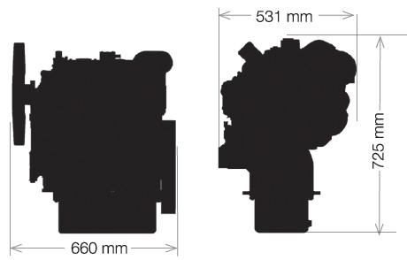 ★側(cè)裝的內(nèi)置渦輪增壓器,在提供額外動(dòng)力之余,只令組裝尺寸稍為增加,設(shè)備安裝工作因而變得更輕松。