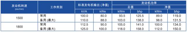 上表所有額定功率數(shù)據(jù)均為ISO/TR 14396/IS0 8528條件下操作時(shí)數(shù)據(jù)。